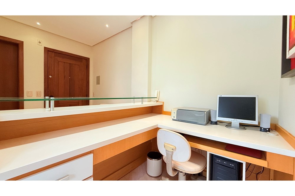 Sala ampla e funcional, com 34m² privativos, situada no 4º andar de um prédio totalmente reformado. Conta com duas vagas cobertas de garagem, um diferencial importante na região.