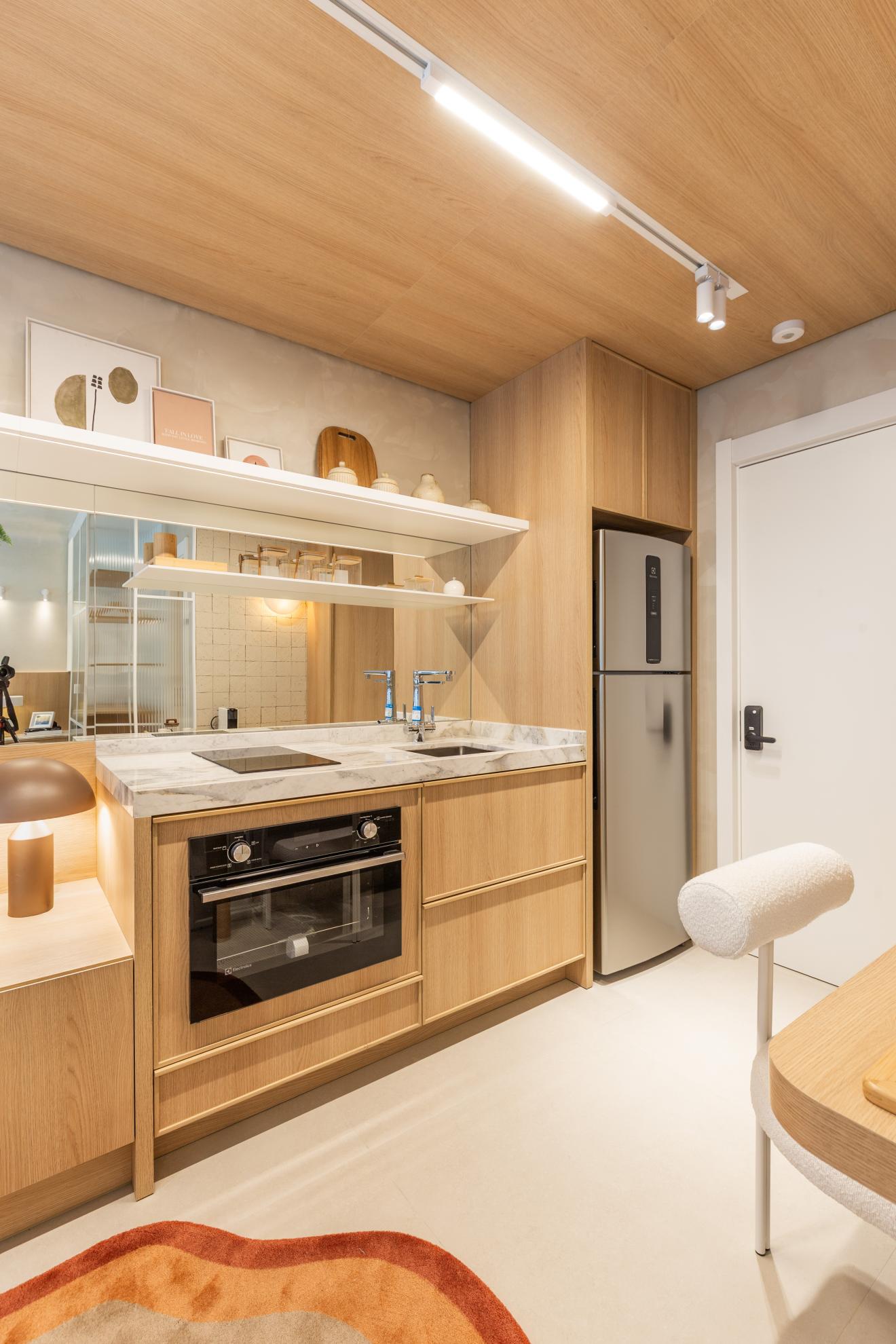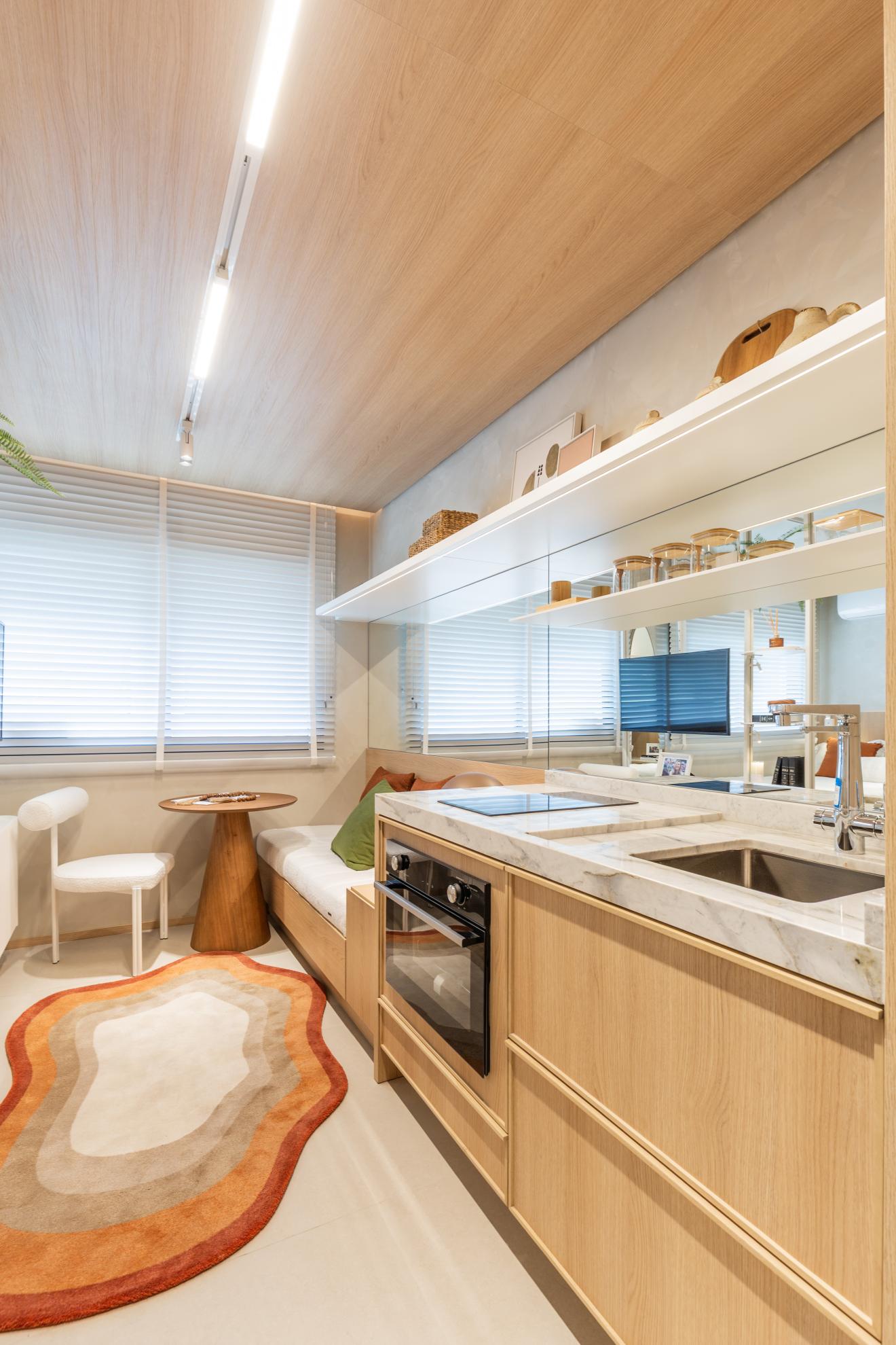 Ambientes Integrados: Cozinha e estar fluem harmoniosamente, criando uma sensação de amplitude e modernidade.