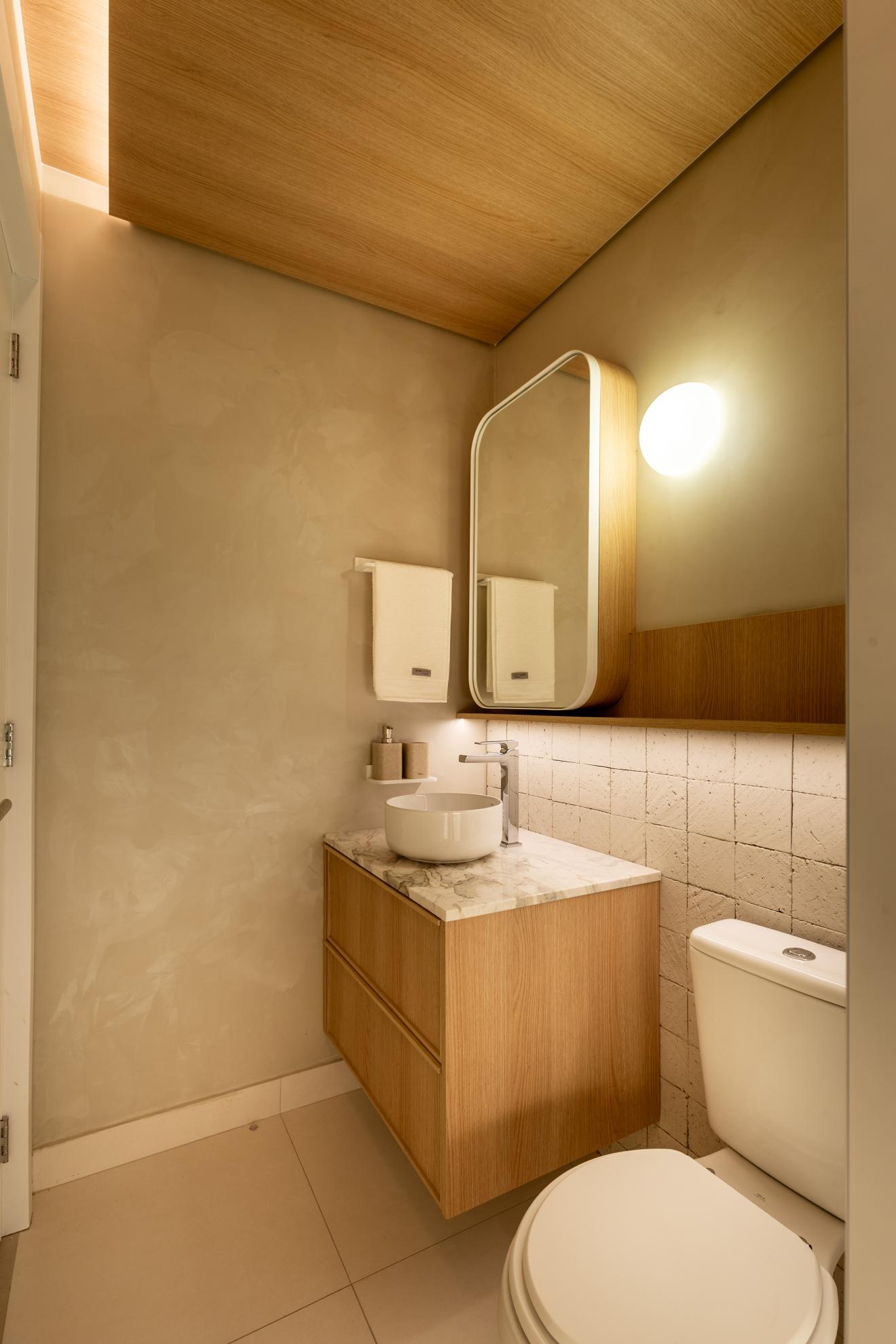 Banho Funcional: Espaço otimizado com acabamento impecável.
