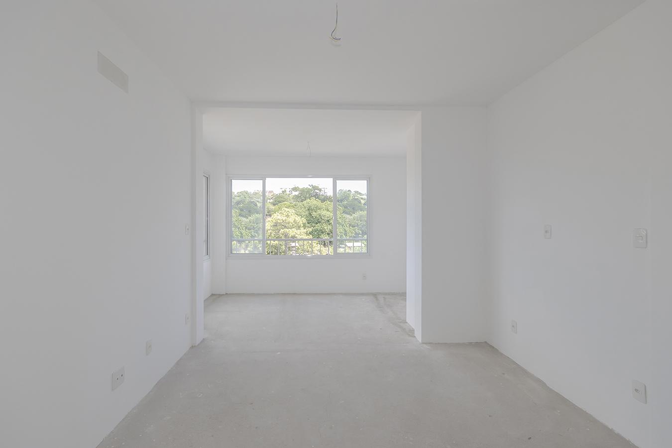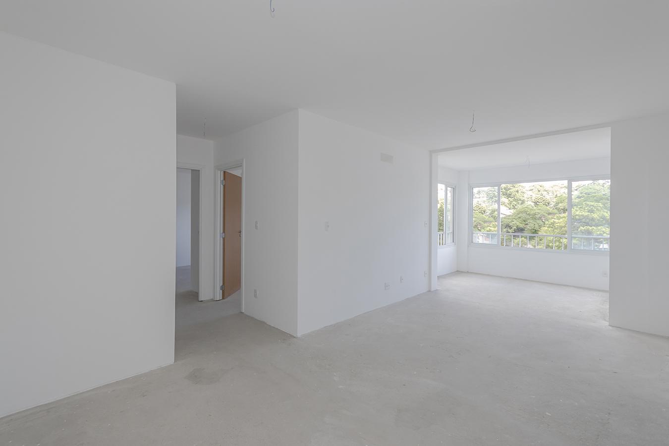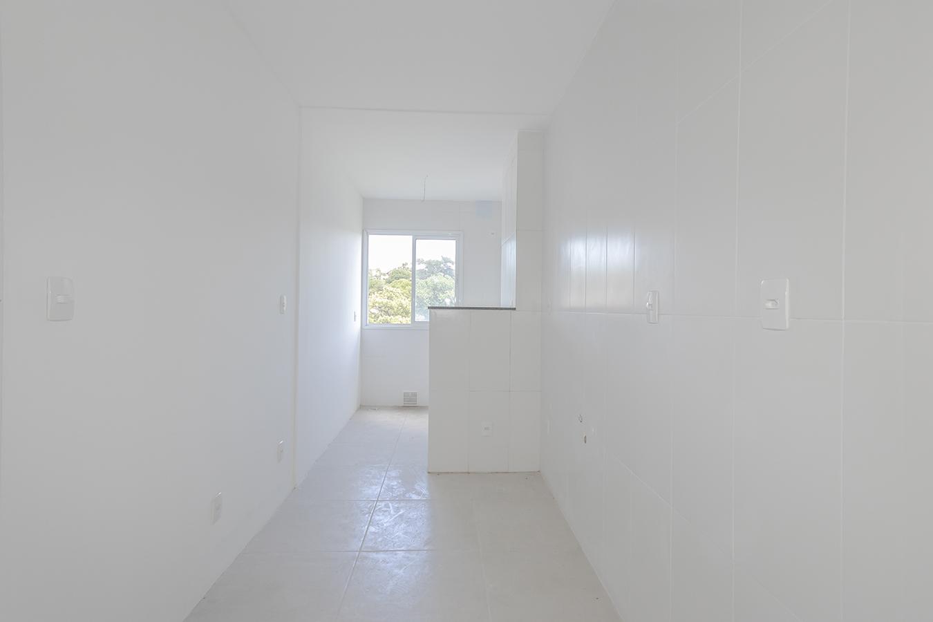 Apartamento 76,56m² de fundos, com 2 domitorios sendo 1 suite, banheiro social, cozinha americana, com area de serviço integrada, espera para churrasqueira, living 2 ambientes e 2 vagas . Piso porcelanato nas areas molhadas.