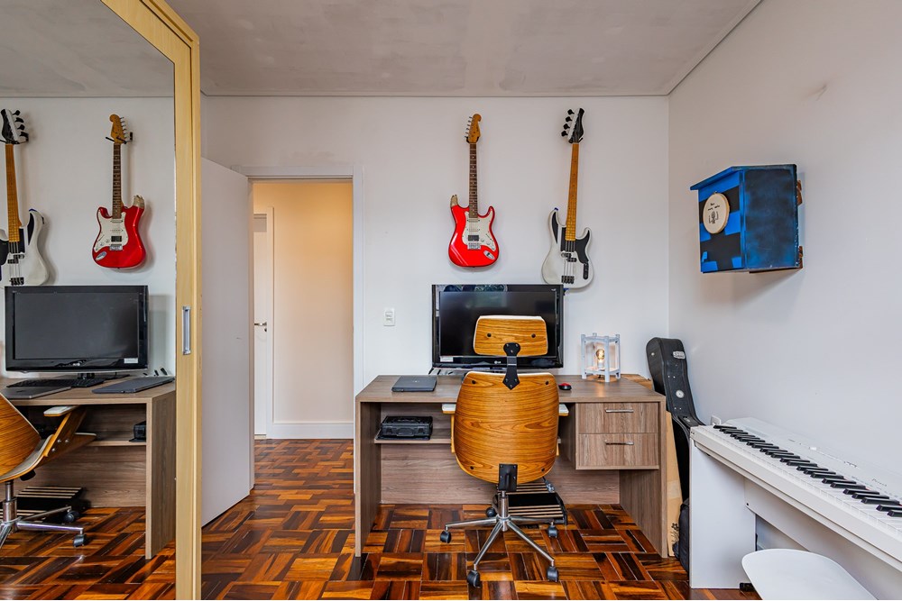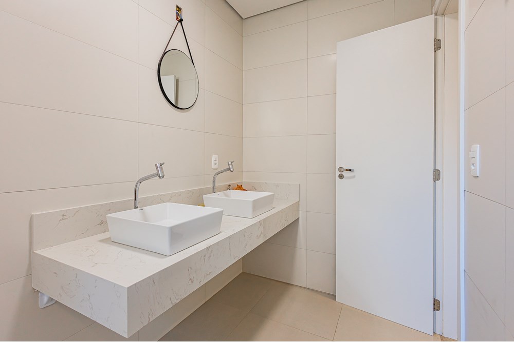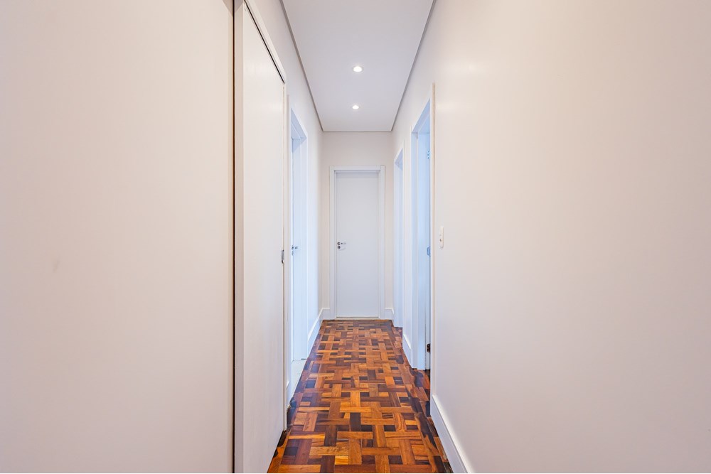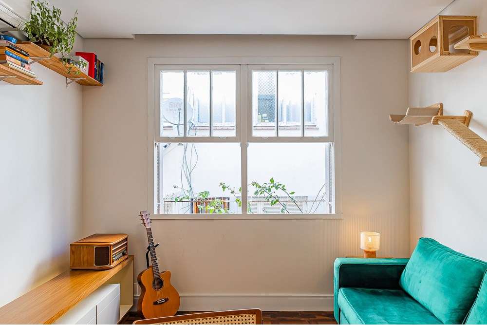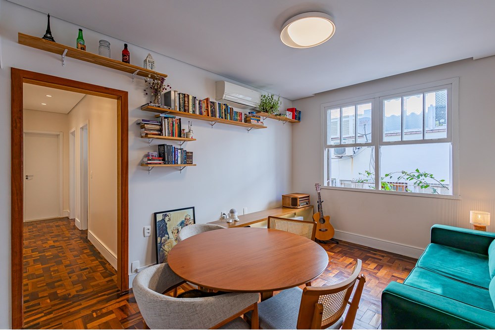 Esse apartamento com 76m² de área útil possui dois dormitórios e um escritório, passou por uma reforma completa, inclusive de elétrica e hidráulica. Oferece uma planta inteligente, com cozinha integrada ao living e um lavabo que atende à área social perfeito para quem valoriza praticidade e convívio no dia a dia. Conta ainda com um amplo banheiro social, também todo reformado, com duas cubas, que traz ainda mais conforto e funcionalidade para a rotina.