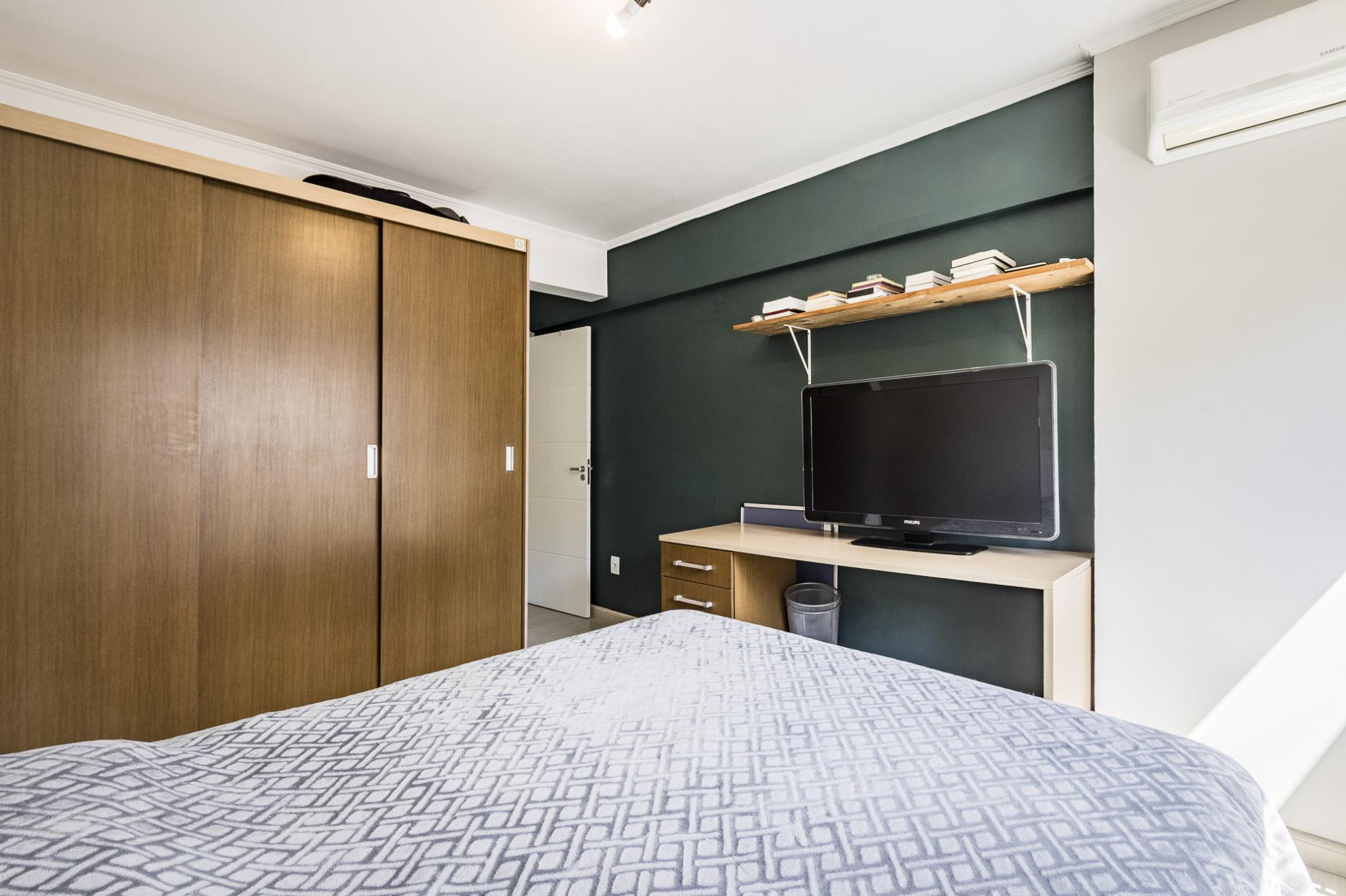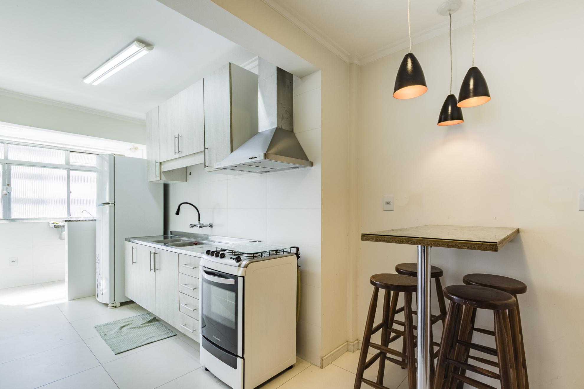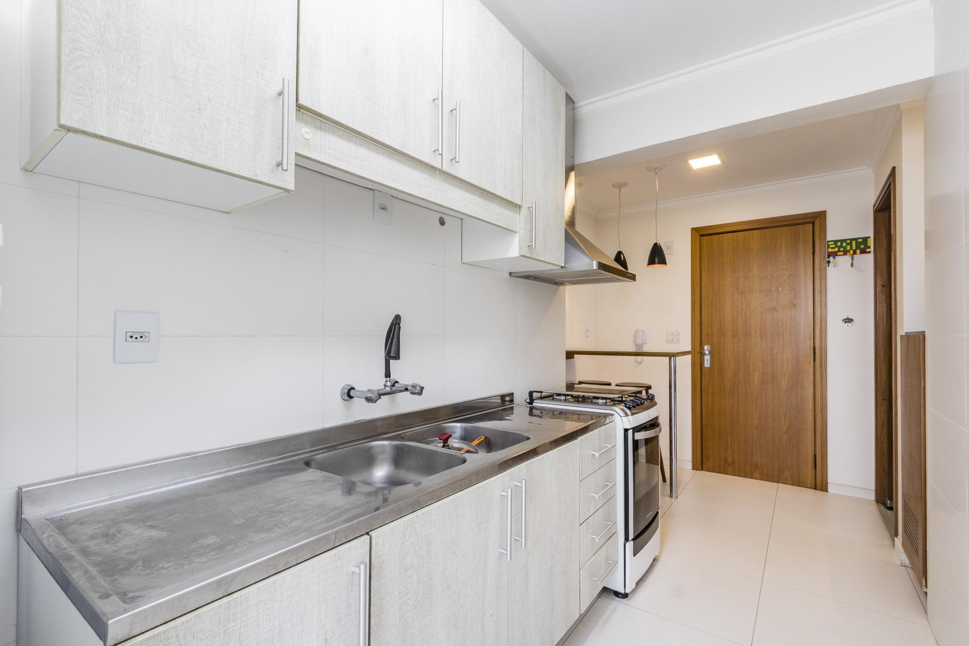 O living é amplo, com dois ambientes bem definidos, ideal para receber amigos, relaxar ou trabalhar em um ambiente confortável e funcional. A cozinha conta com armários sob medida e uma porta que garante mais privacidade e organização ao espaço.