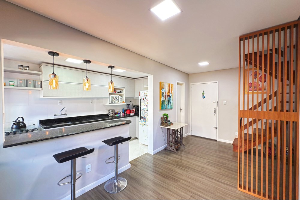 Localizado no 2º e 3º andar, esse duplex é o resultado da unificação de duas unidades, transformadas em um imóvel amplo, funcional e belo.