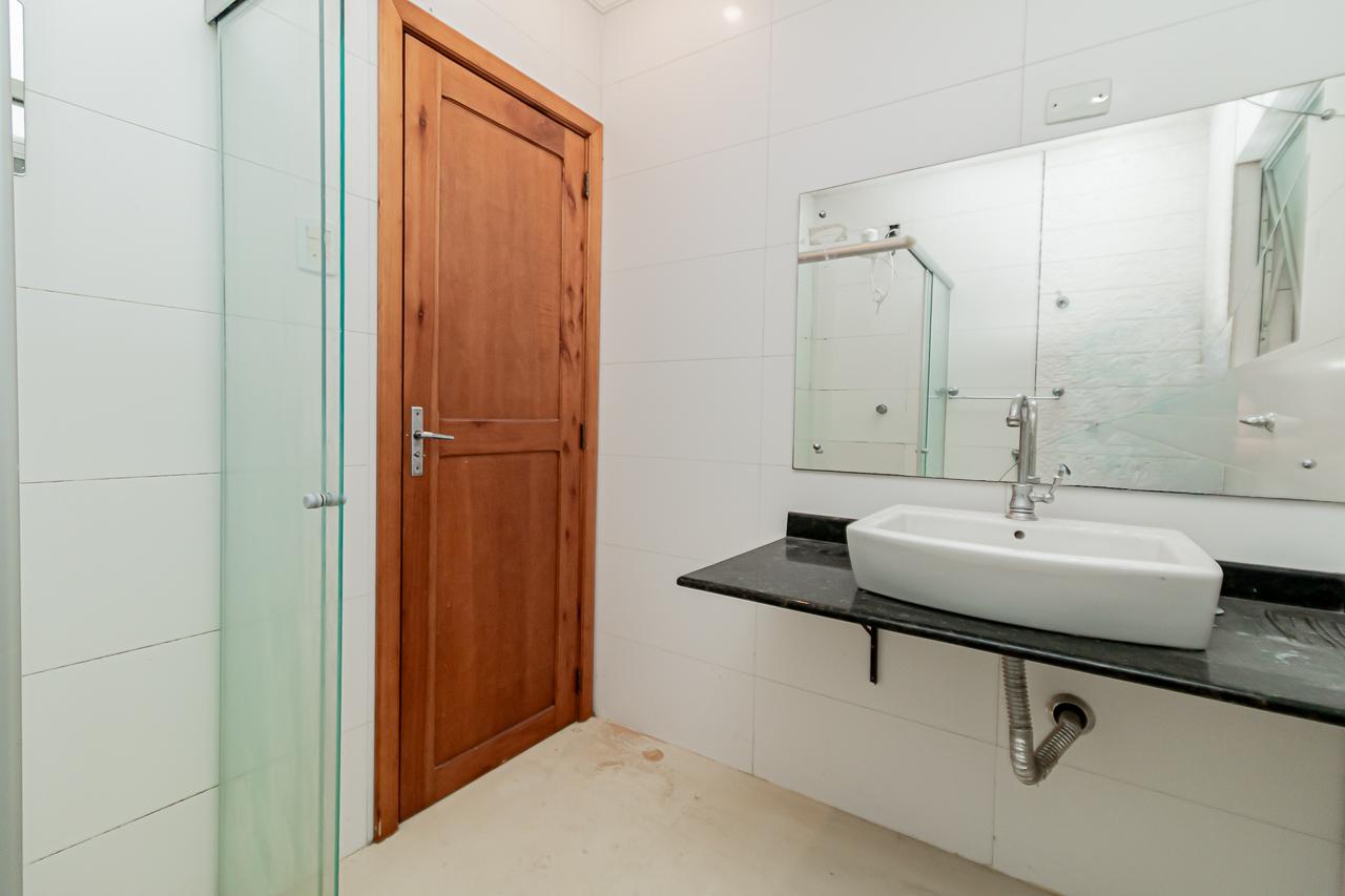 O imóvel conta com três dormitórios, sendo dois deles posicionados de frente e com sacada. A planta oferece uma ampla sala para dois ambientes, banheiro social com ventilação natural, além de uma cozinha espaçosa com entrada de serviço independente, área de serviço e banheiro auxiliar.