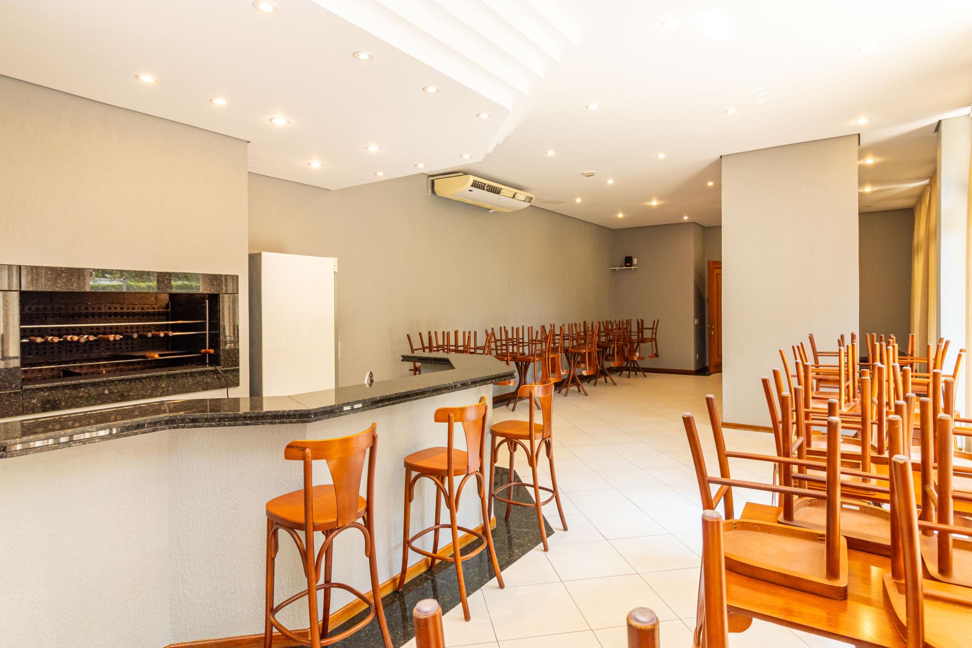 Estar, jantar e um espaço gourmet com churrasqueira integrados, banhados por iluminação natural constante e ventilação cruzada.