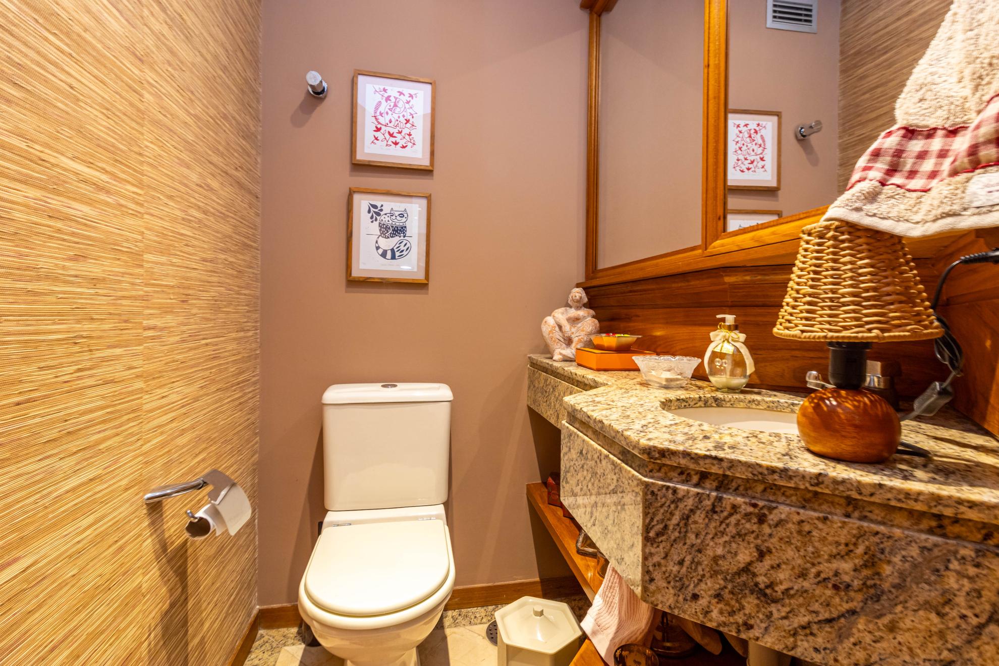 Banheiros com ventilação direta, lavabo discreto no hall de entrada e uma copa-cozinha separada da área de serviço (que possui banheiro auxiliar completo).