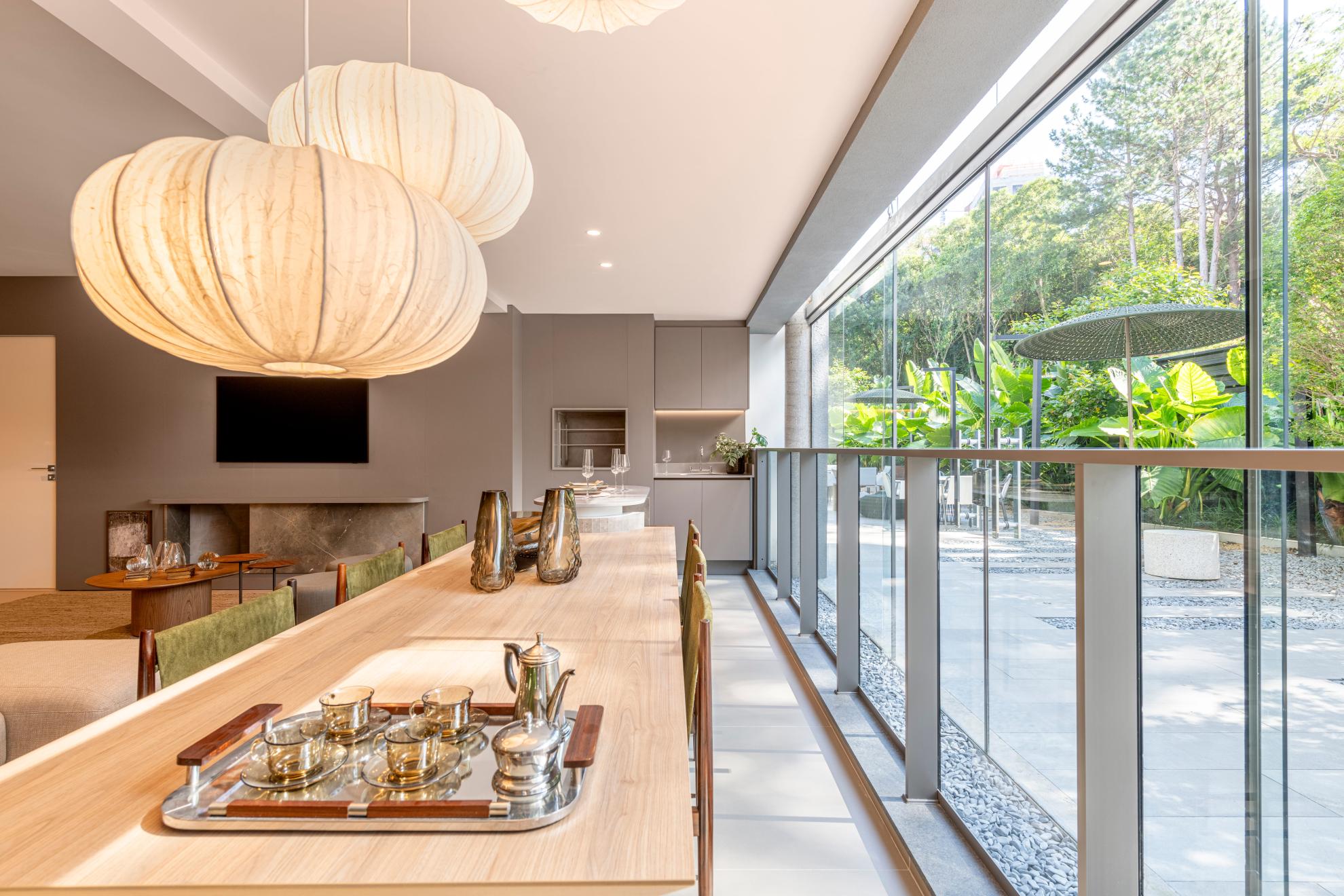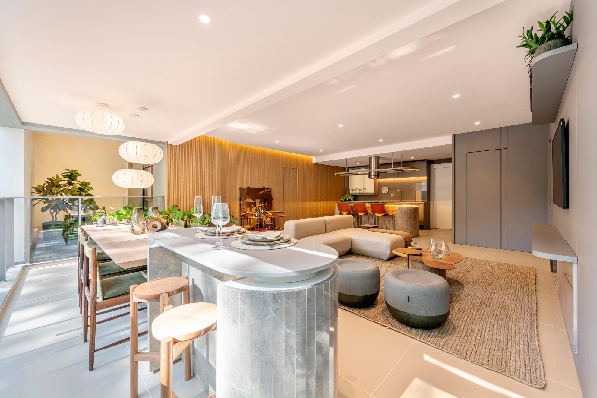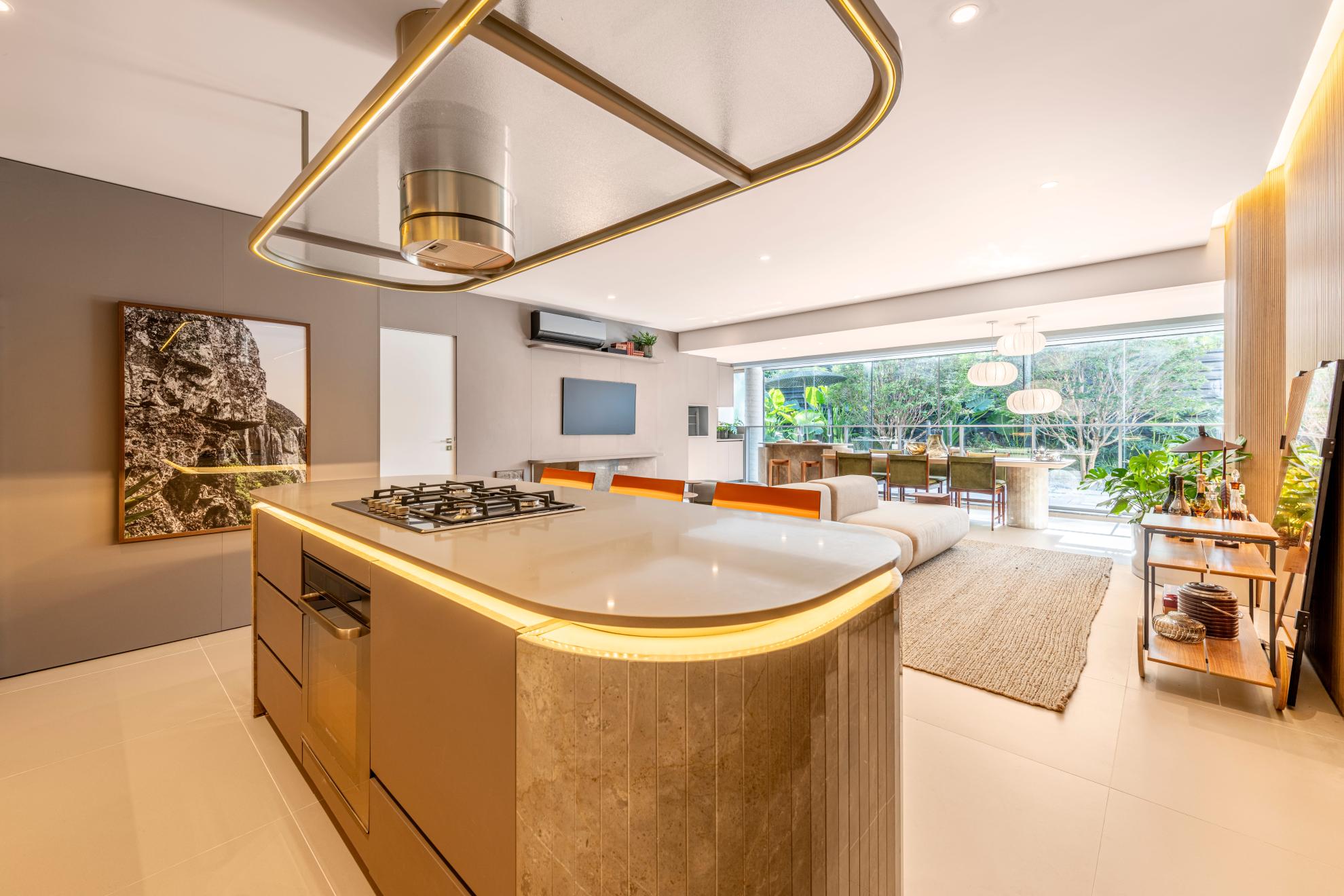 Destaque: Living integrado e sacada com churrasqueira, ideal para momentos de lazer e contemplação.