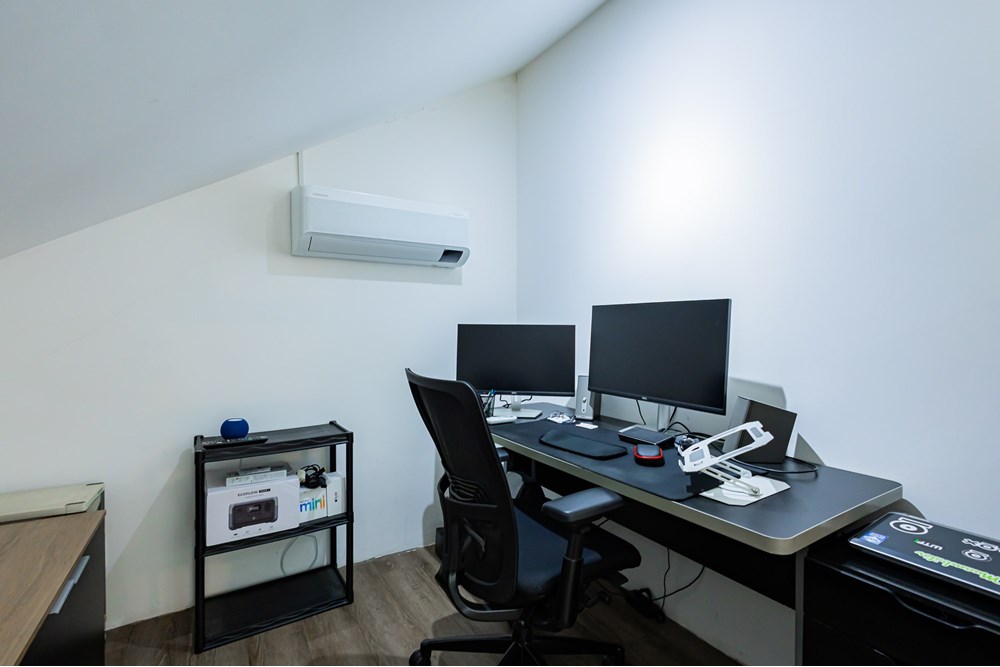 Home office confortável e iluminado;
