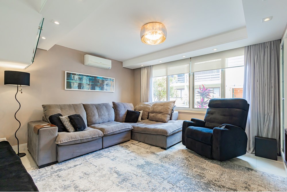 Ao entrar, você é recebido por um living para dois ambientes, em conceito aberto e com pé-direito duplo, proporcionando amplitude e luminosidade.