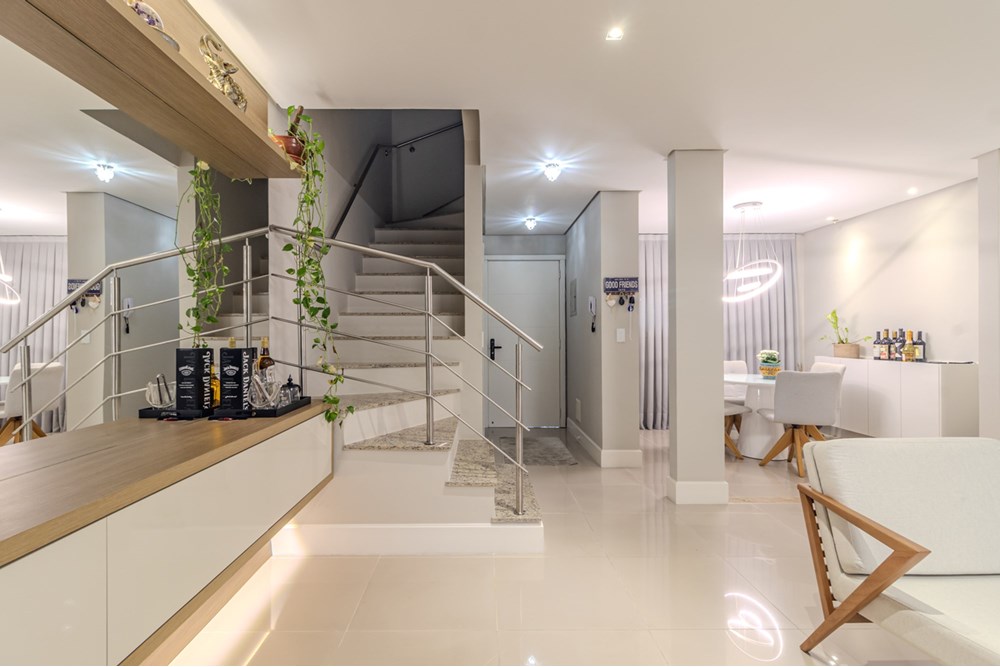 O segundo pavimento abriga uma suíte, um banheiro social e dois dormitórios, sendo um deles transformado em um prático escritório. Já no terceiro pavimento, encontra-se uma espaçosa suíte master com closet e um amplo terraço, ideal para desfrutar de momentos de lazer e descanso.