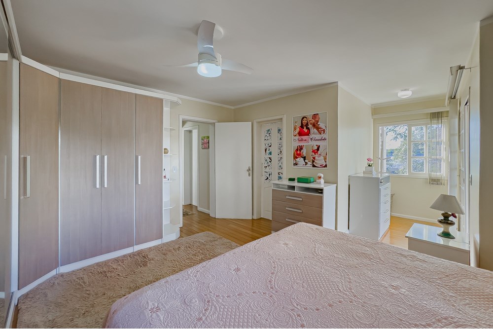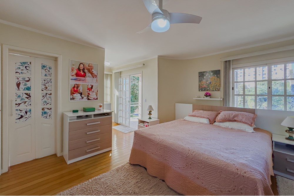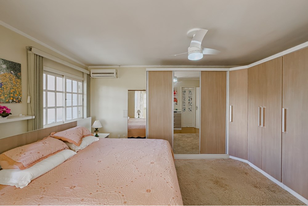 No andar superior, a área íntima oferece três dormitórios, sendo uma suíte espaçosa com sacada privativa. Um refúgio dentro de casa!