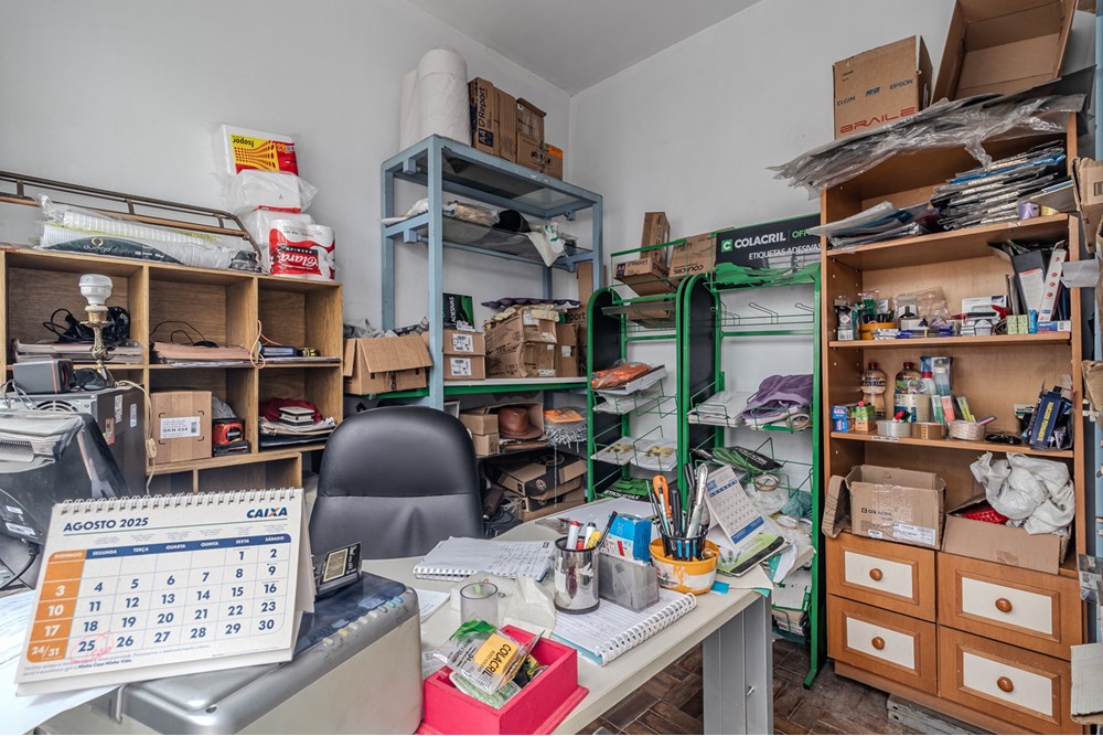 A casa conta com estrutura inclusive para um estabelecimento comercial, com entrada individual para um escritório e uma edícula própria para um pequeno depósito.