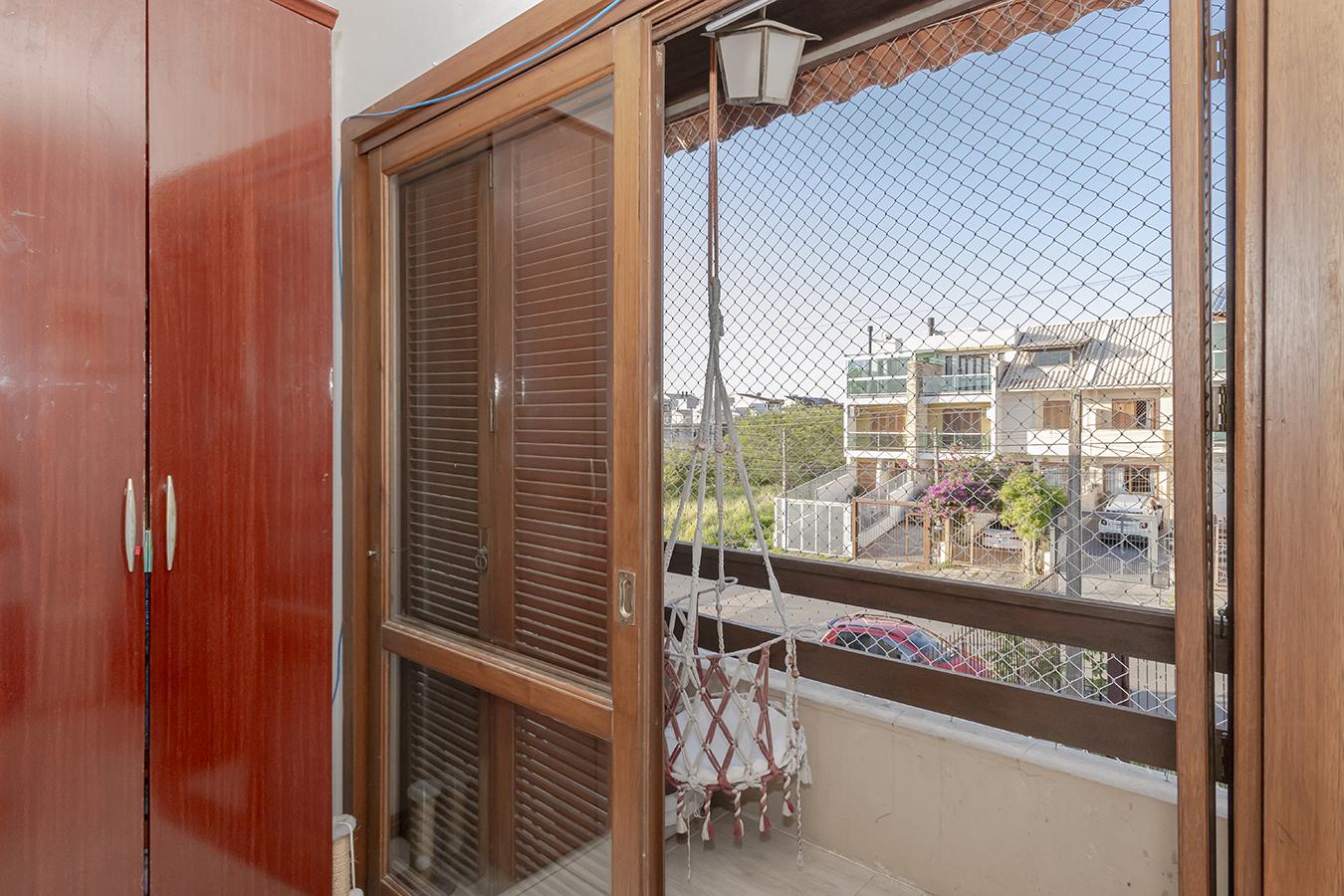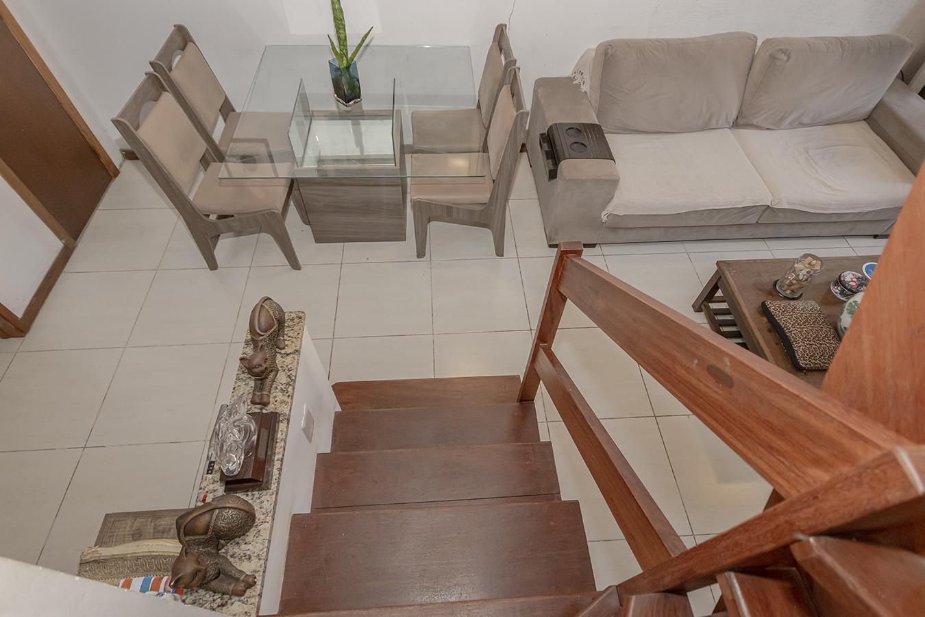O imóvel possui duas suítes, ambas com sacada, o que garante ótima iluminação e ventilação natural aos dormitórios. No pavimento térreo, o projeto contempla uma ampla sala para dois ambientes, lavabo e uma cozinha com churrasqueira integrada à área de serviço.